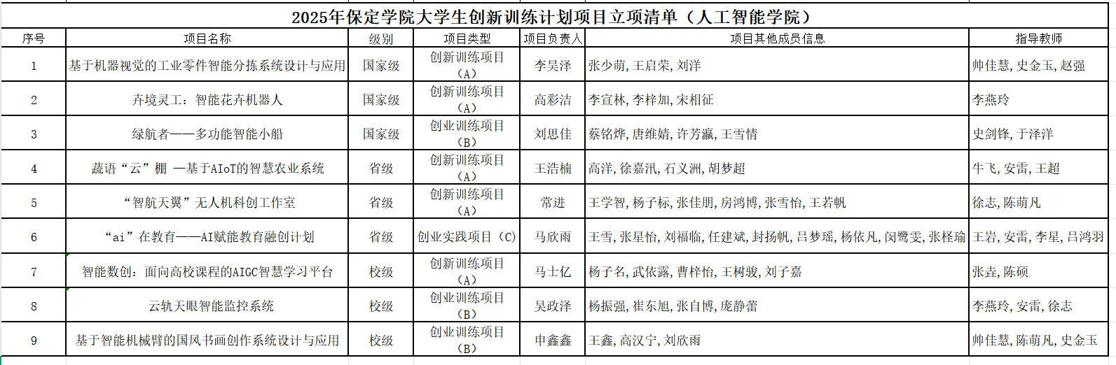喜报!我院9组项目获保定学院2025年“大学生创新创业训练计划项目”立项