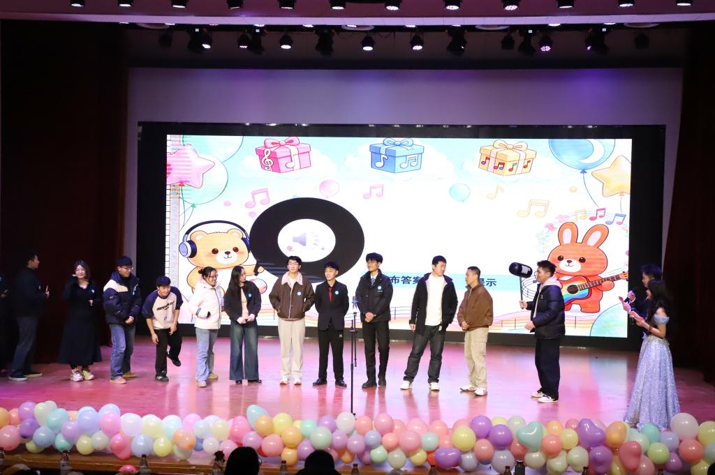 中场歇一歇,互动游戏轮番上阵超有趣!猜歌名环节师生同台比拼,气锤惩罚笑料百出;好运柚子战传递间满是紧张,摇一摇游戏拼手速赢玩偶,大家玩得不亦乐乎,氛围感直接拉满!