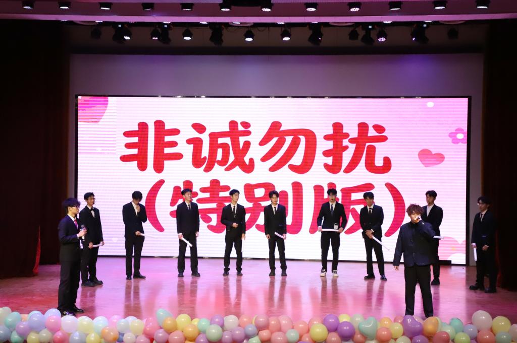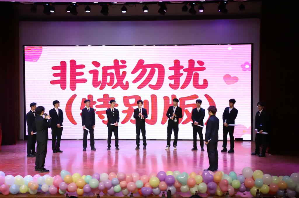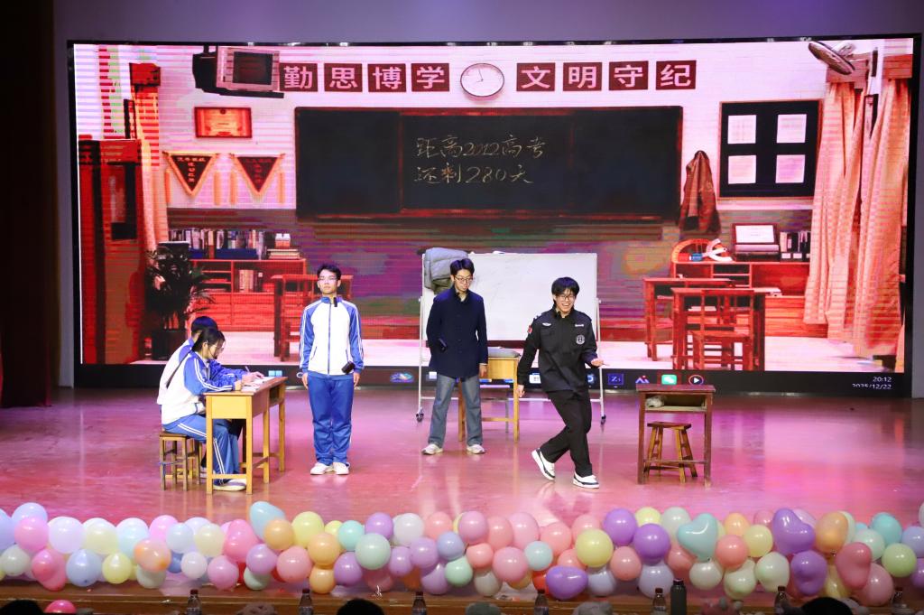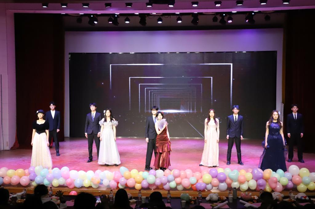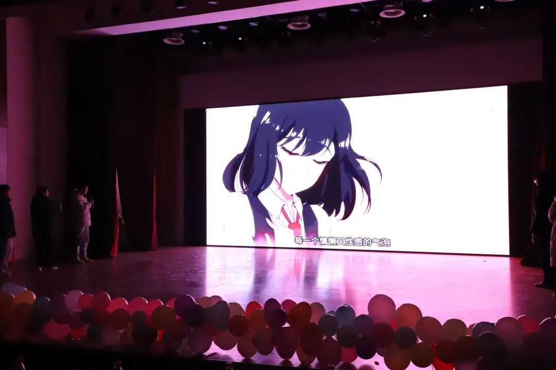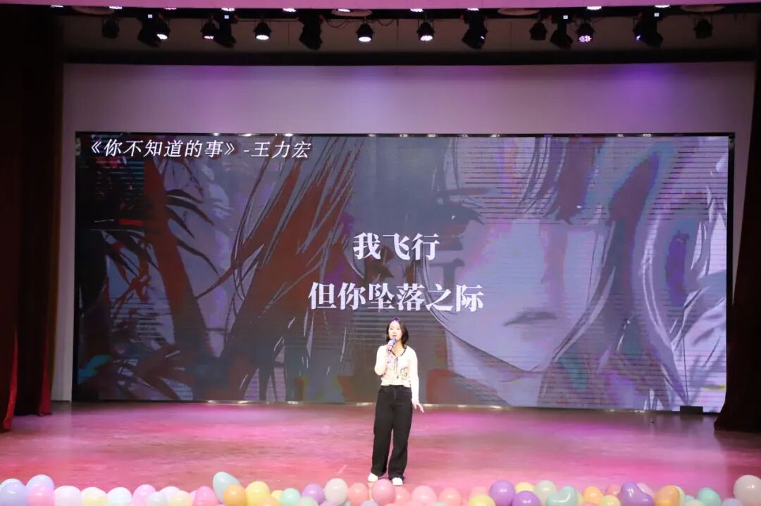 晚会尾声,赵子涵、刘淯铭、刘子宽带来合唱《你可以慢点走》,温柔的歌声缓缓响起,舒缓的旋律与治愈的歌词交织,让现场满是温情,三位演唱者用细腻声线将美好期许融入歌声。随后,同学们带着热忱登场,为这场视听盛宴再添温馨一笔,也让大家带着这份美好,奔赴新的一年。