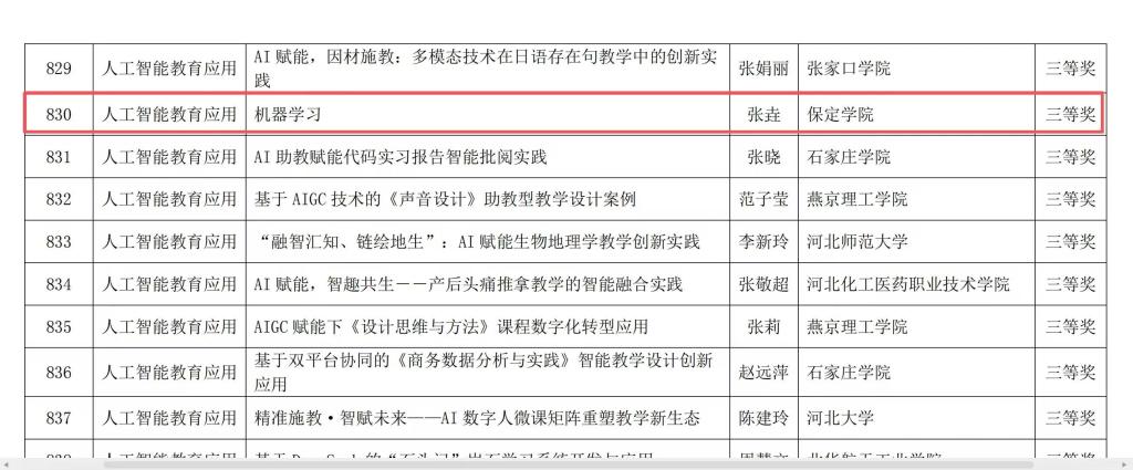 在2025 年河北省教育技术中心开展的人工智能教育与应用案例征集活动中,我院教师张垚凭借扎实的专业素养、创新的教学理念与突出的实践能力,在此项省级赛事中喜获河北省人工智能教育应用案例三等奖等奖1项,充分展现了我院在教师在人工智能应用能力与教学创新实践方面的显著成效!
